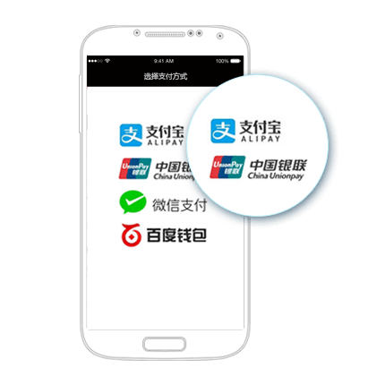 鉴橙易支付,为iOS/Android原生/H5 App提供支付解决方案:支持微信支付、支付宝支付、银联手机支付、百度钱包等。